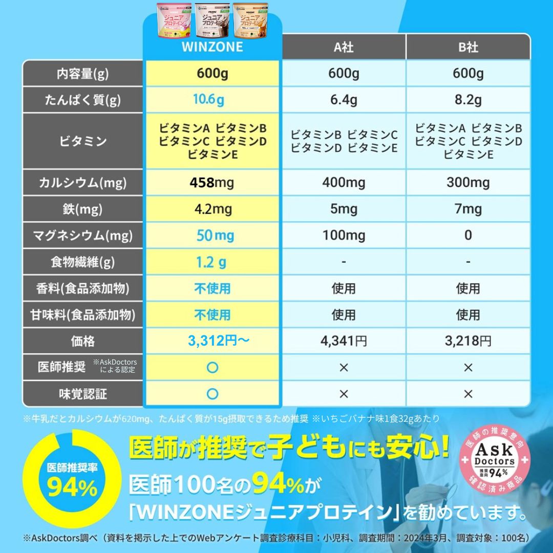 100 人中 94%の医師が推奨するジュニアプロテイン