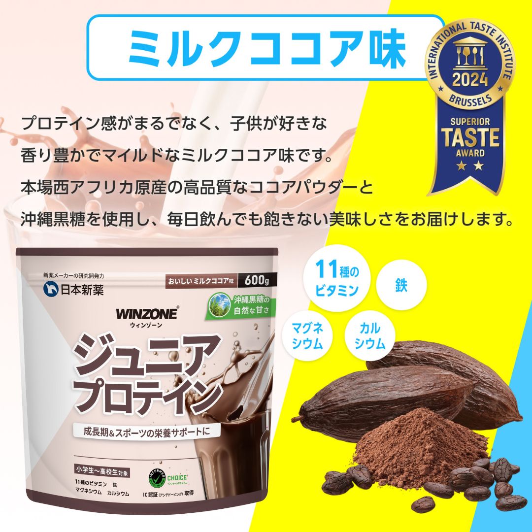WINZONEジュニアプロテインは医療用医薬品メーカーとして創立100年以上の歴史を持つ日本新薬が培ってきた技術と経験を集約して子どもたちの成長を考え抜いて開発した商品です。「息子が「いつもの飲む!」と自分で作るほどお気に入りです」「身体づくりだけでなく、味覚にまで子どもの将来のことを考え抜いて作られた商品で安心して子どもに飲んでもらってます!」などの声を数多くいただいております。