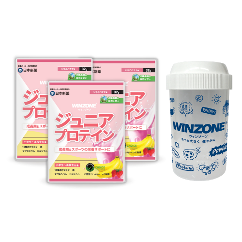 WINZONEジュニアプロテインは医療用医薬品メーカーとして創立100年以上の歴史を持つ日本新薬が培ってきた技術と経験を集約して子どもたちの成長を考え抜いて開発した商品です。「息子が「いつもの飲む!」と自分で作るほどお気に入りです」「身体づくりだけでなく、味覚にまで子どもの将来のことを考え抜いて作られた商品で安心して子どもに飲んでもらってます!」などの声を数多くいただいております。